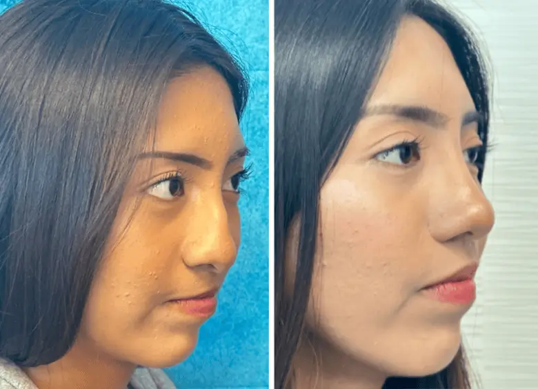 In closed rhinoplasty, the scars are hidden inside the nostrils. Open rhinoplasty may leave a small scar on the columella, but it’s usually discreet.